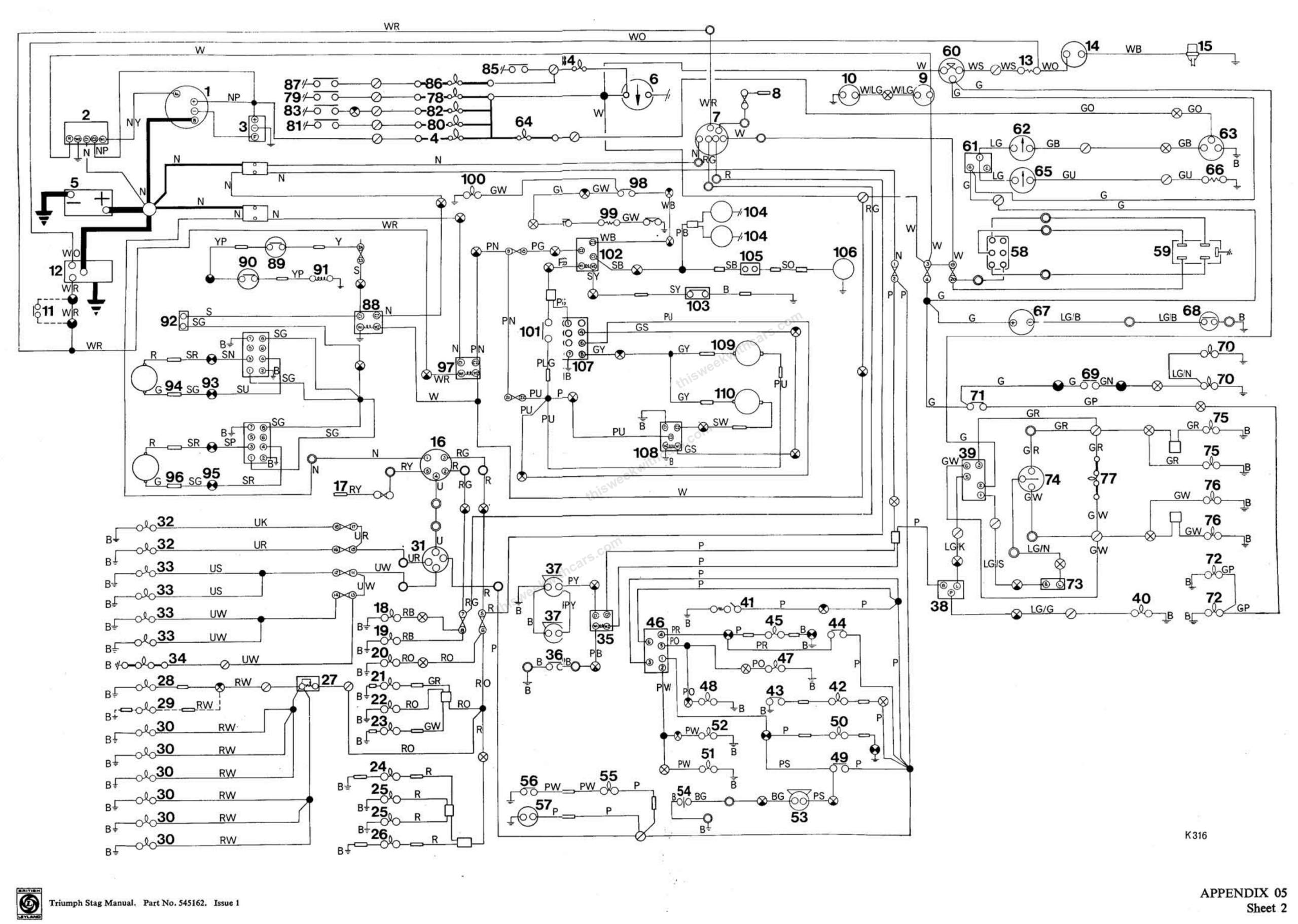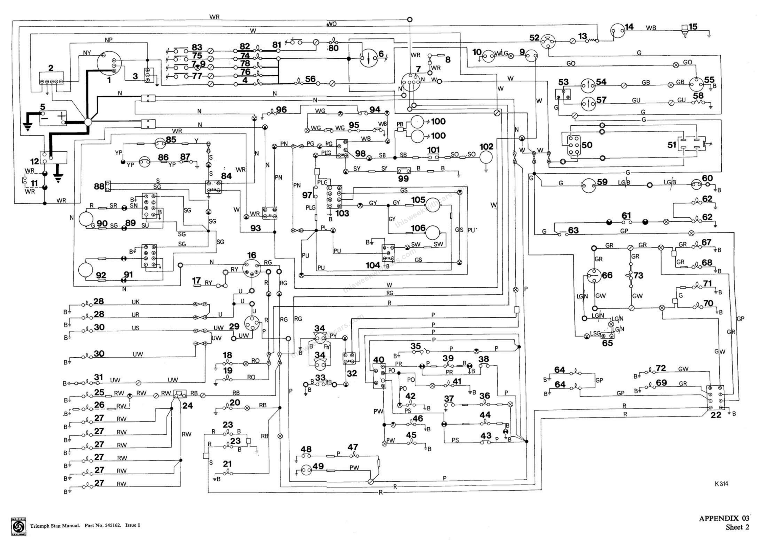 Triumph Stag Wiring Diagram - R.H. Steer Full