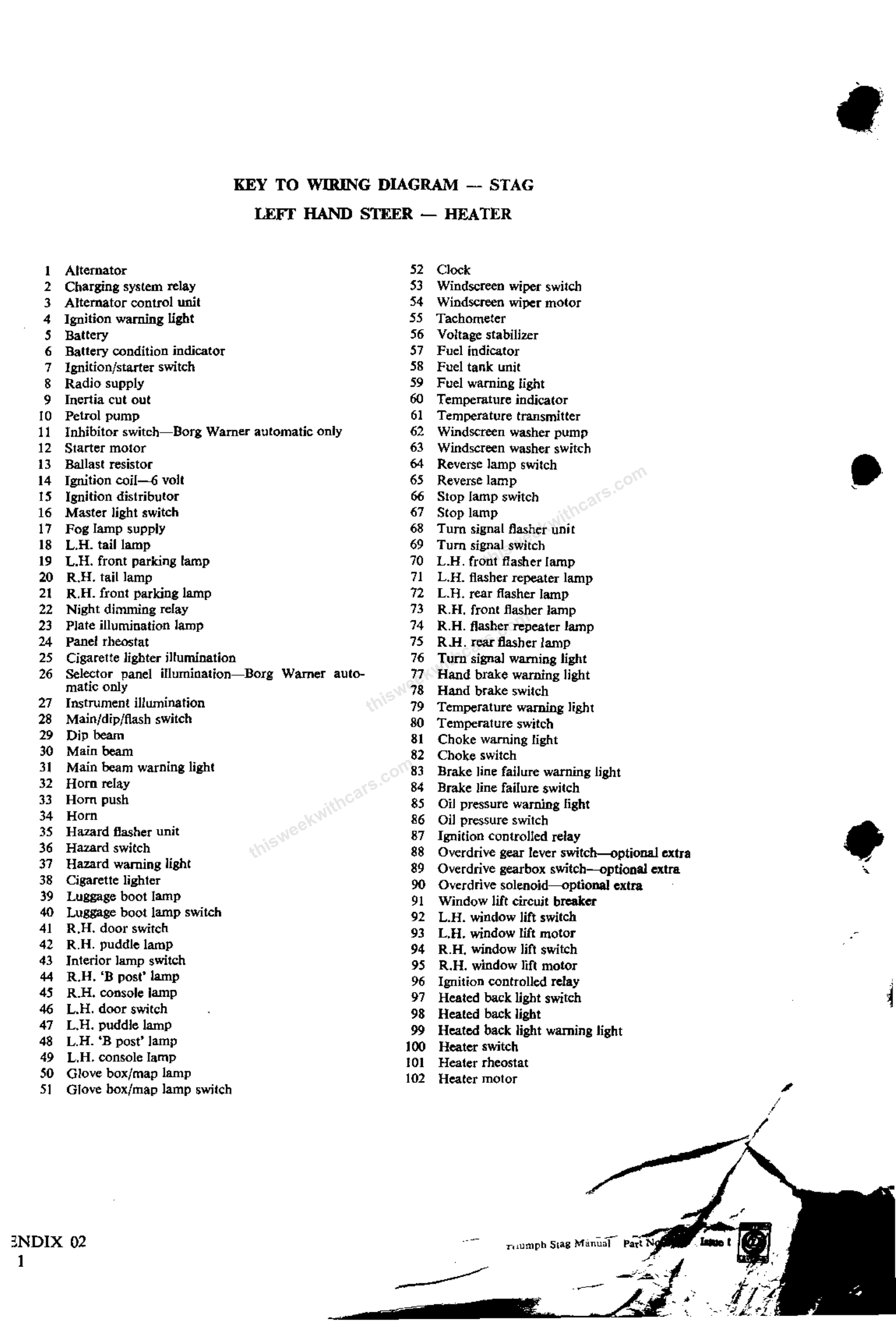 Triumph Stag Key to Wiring Diagram - R.H. Steer Page 2