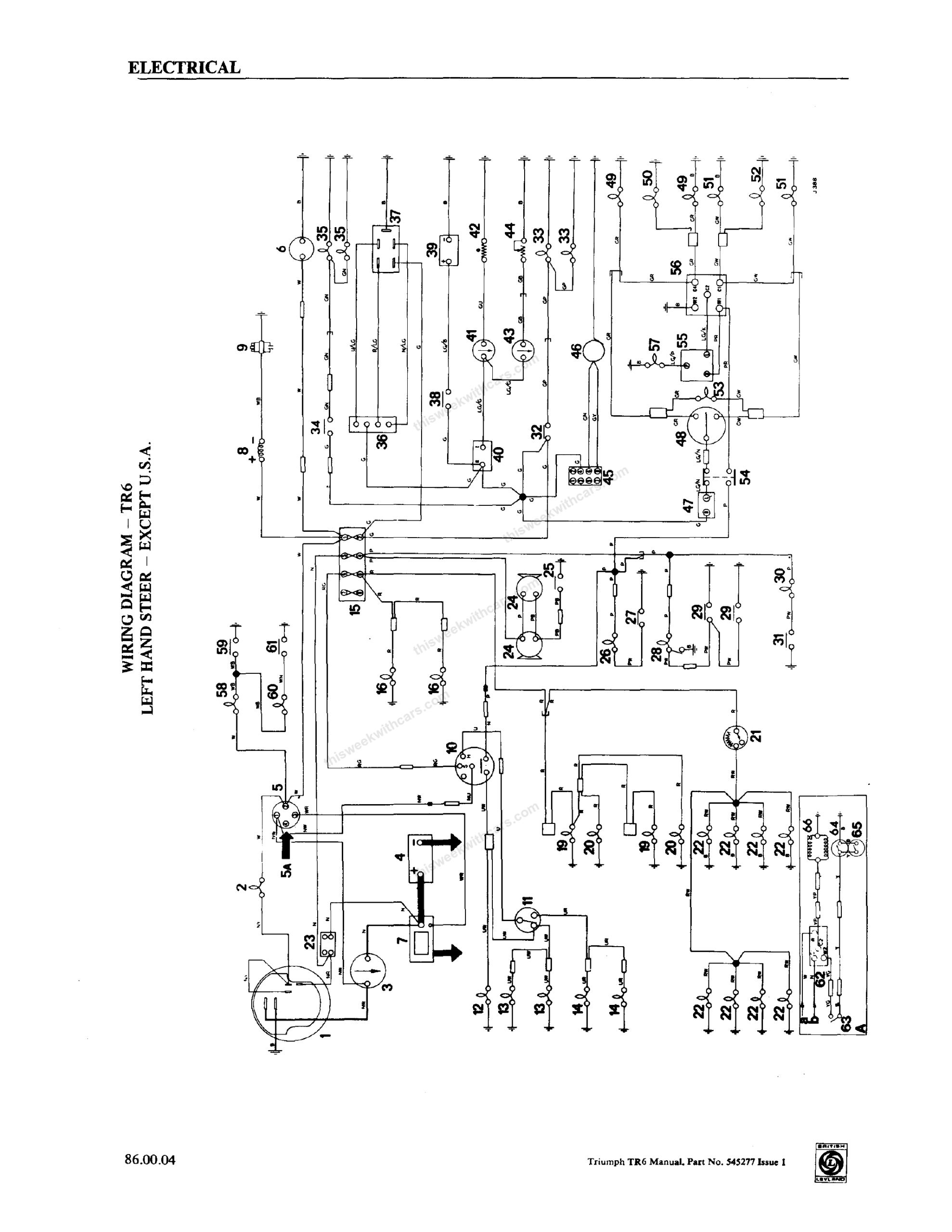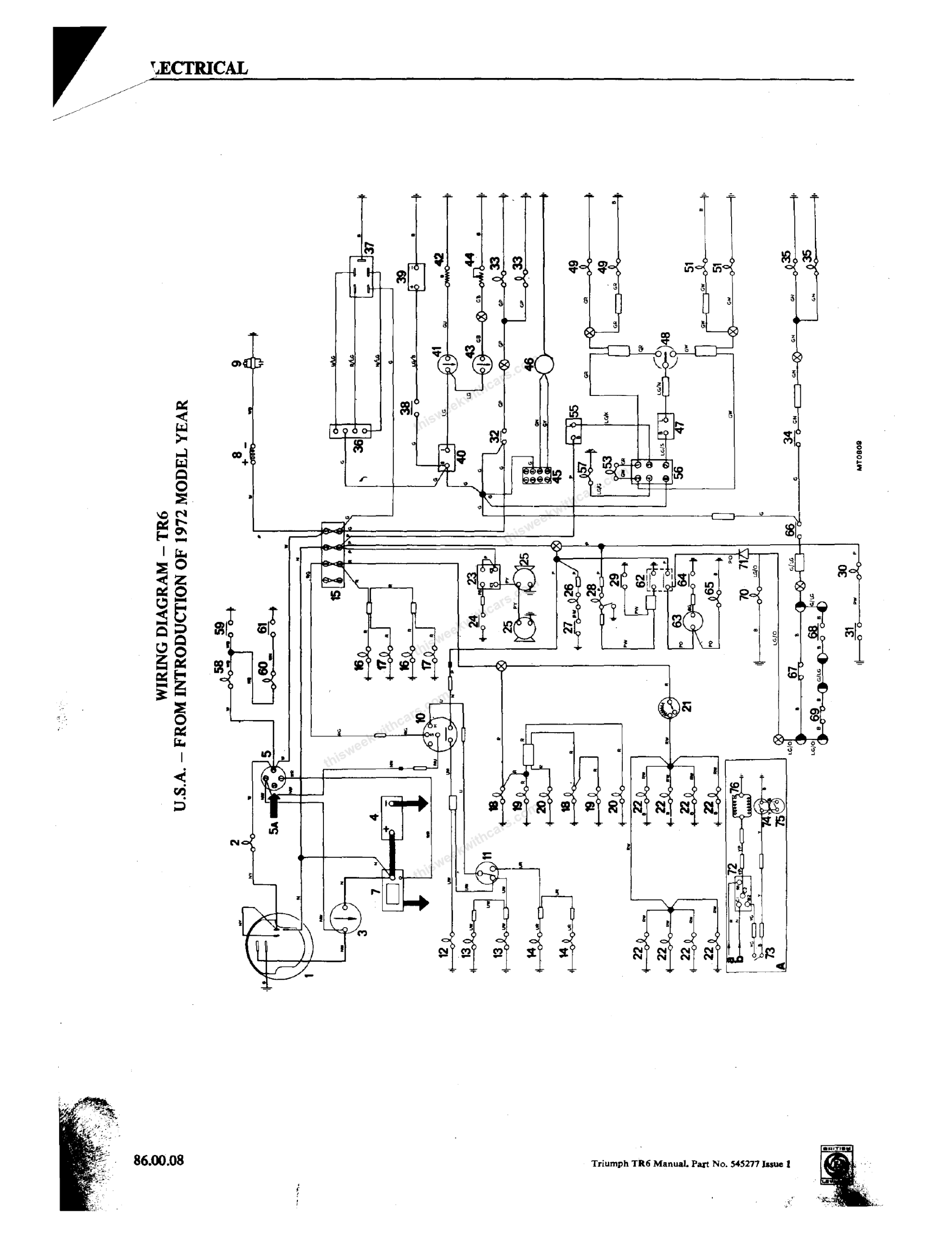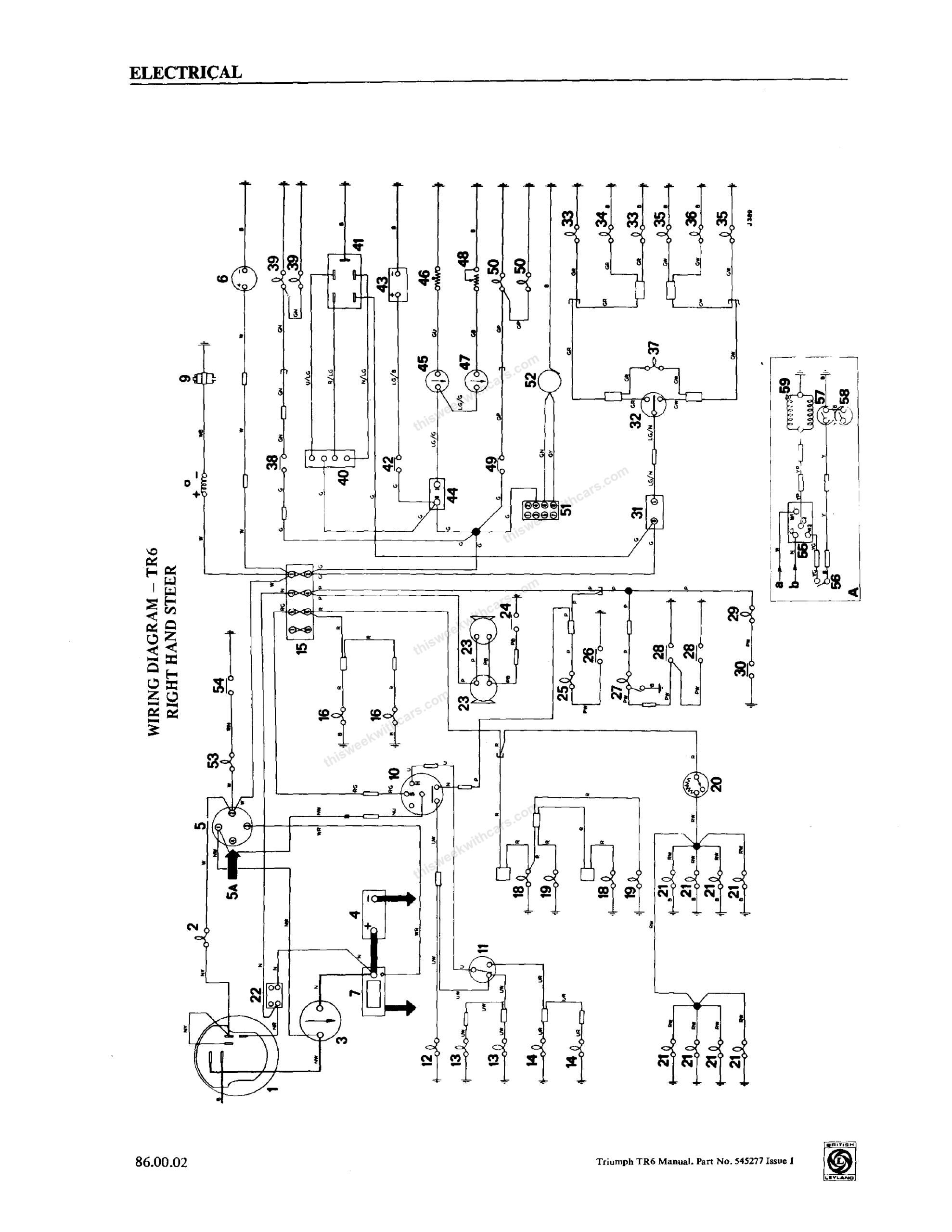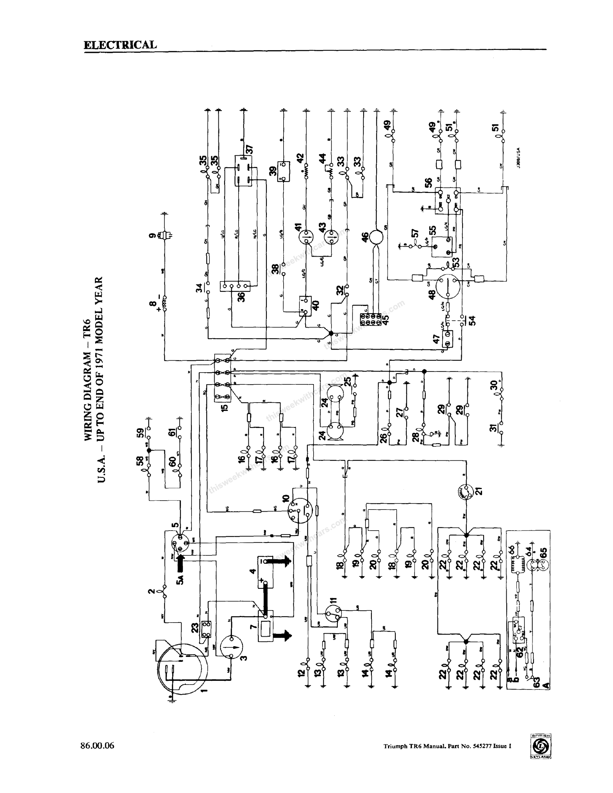 Wiring Diagrams Workshop Manual Wiring Diagrams Wiring diagrams and keys from the Triumph TR6 Workshop Manual. Click any image to view full size. Page 1 Page 2 Page 3 Page 4 Page 5 Page 6 Page 7 Page 8