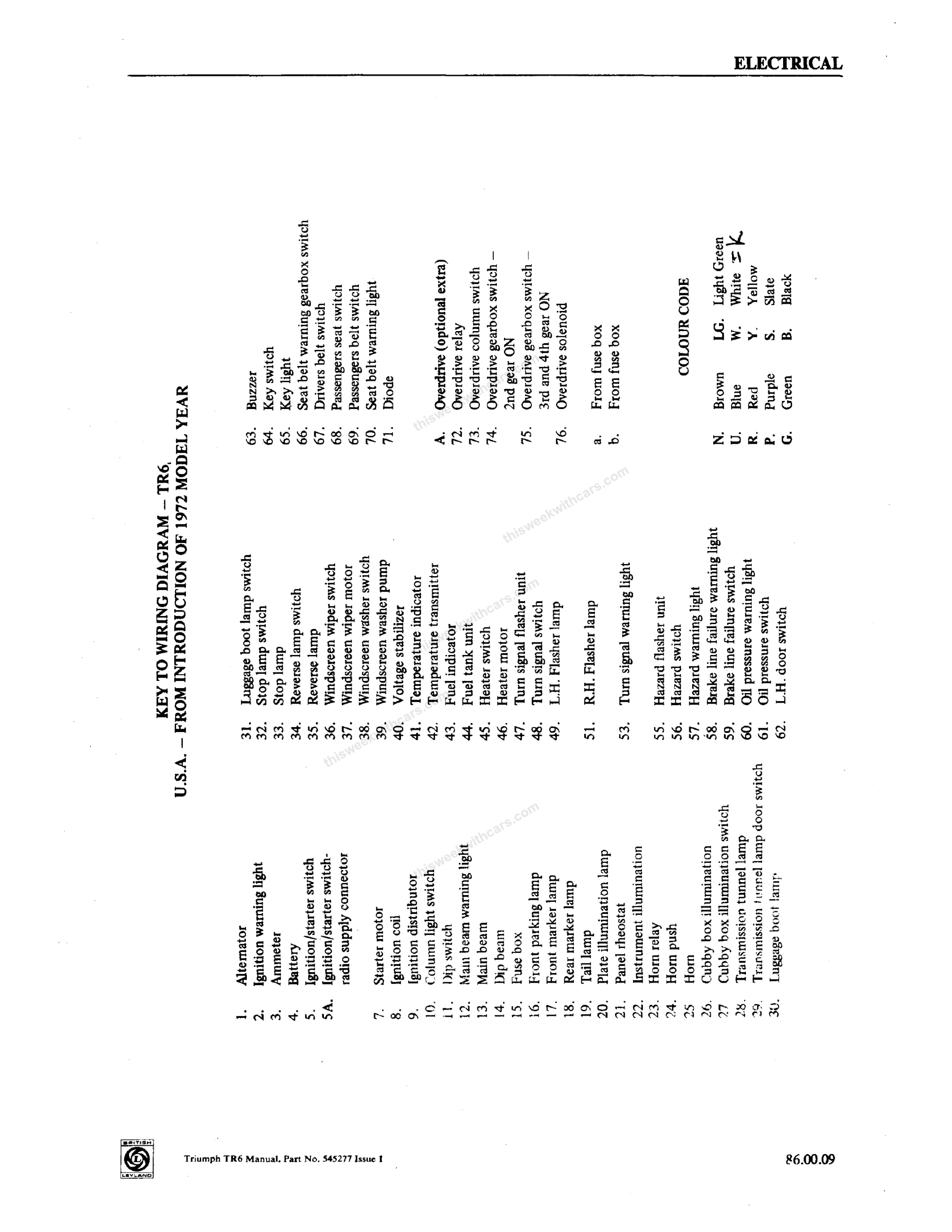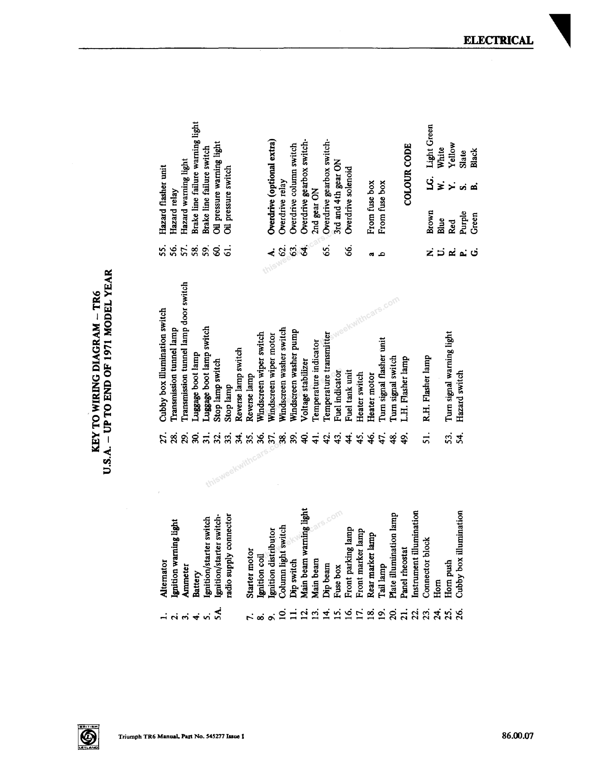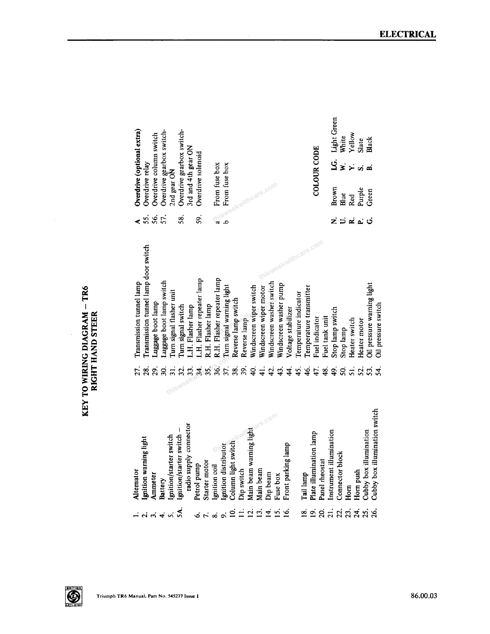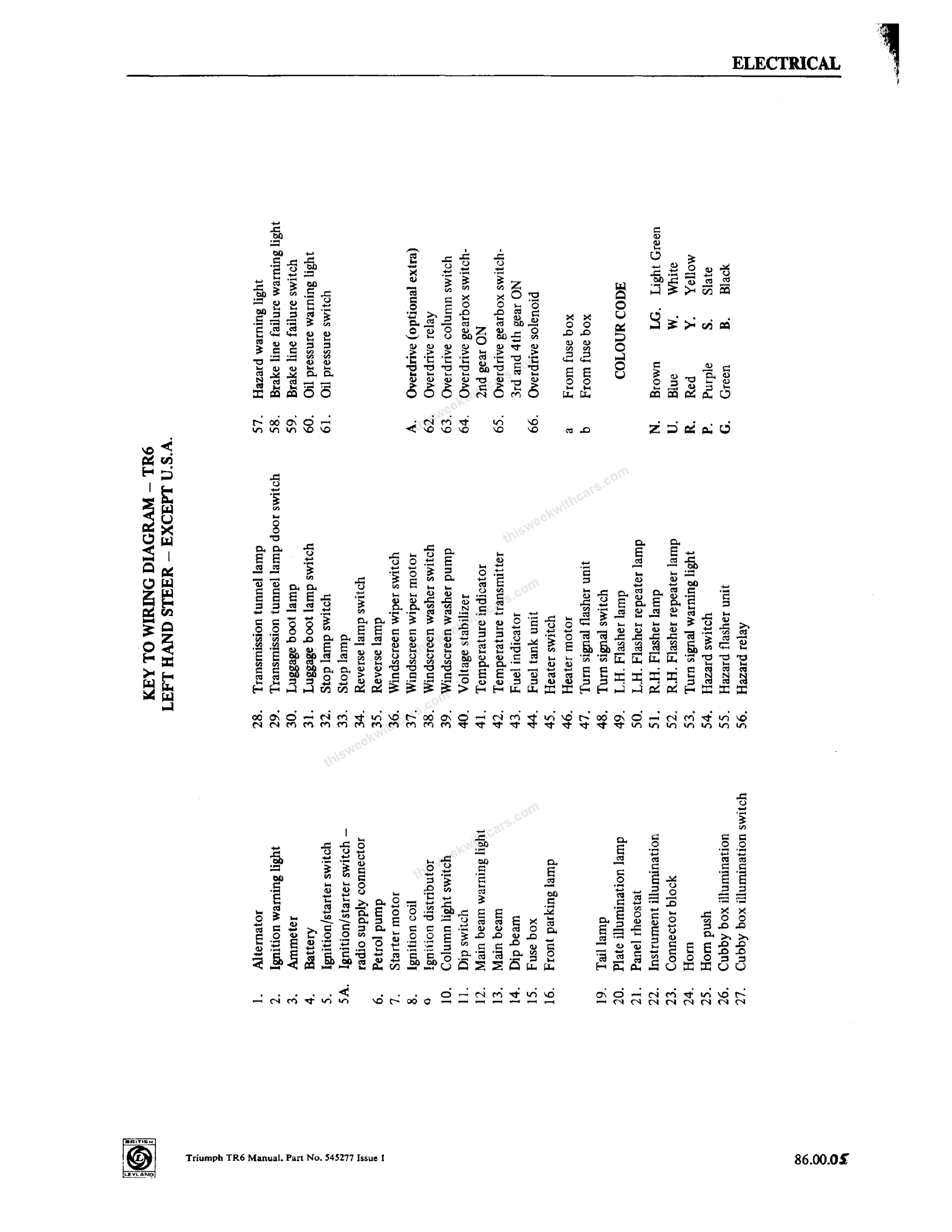 Wiring Diagrams Workshop Manual Wiring Diagrams Wiring diagrams and keys from the Triumph TR6 Workshop Manual. Click any image to view full size. Page 1 Page 2 Page 3 Page 4 Page 5 Page 6 Page 7 Page 8